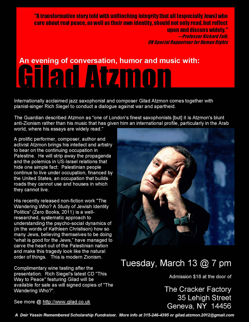 Gilad Atzmon’s appearance schedule Feb-Mar 2012